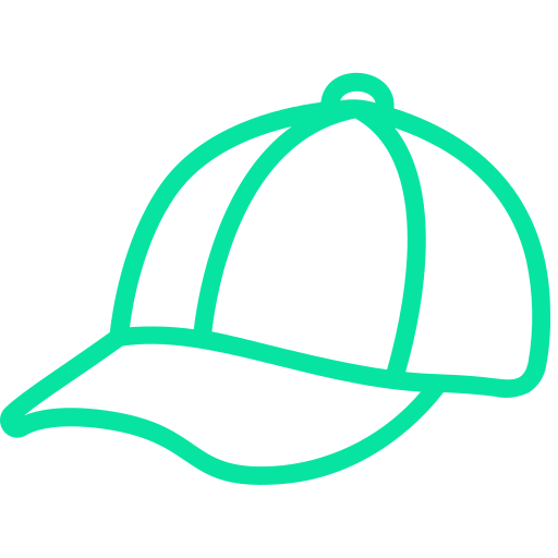 – Americano: Frente firme (peça única), aba curva revestida de tecido e com 5 costuras, revestimento de tecido na copa (laterais e traseira) e fecho plástico ajustável.